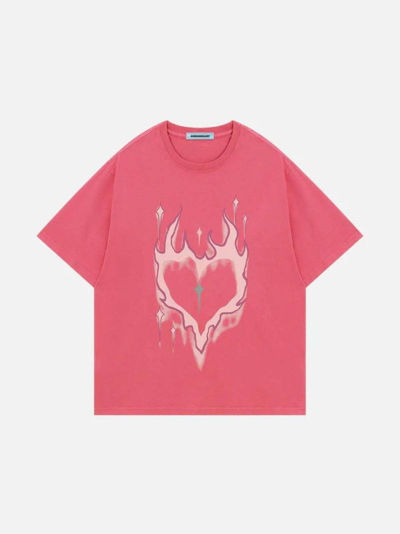 The "Blaze-Ink" Graphic: Utilizes a specialized soft-hand discharge print that dyes the fabric fibers directly, ensuring the heart-flame graphic never cracks or peels, even under high heat.